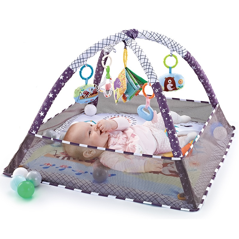 משטח פעילות לתינוק (אוניברסיטה) – מגיעה עם רשת הגנה מסביבה ו-5 תליונים שונים לעידוד הסקרנות והאינטראקציה של התינוק.