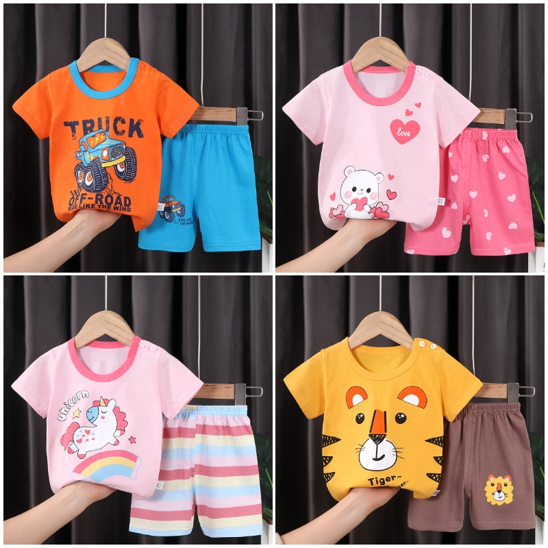 חליפות קיץ לילדים חלצה ומכנס מבד כותנה. מגוון צבעים לבחירה לבנים ובנות. מידות לפי גובה 73-110 ס״מ.