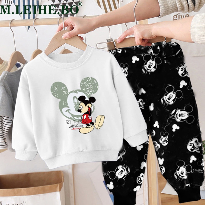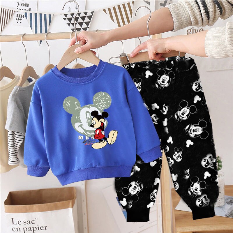 מבחר חליפות פוטר לילדים, סט ארוך שני חלקים חולצה+מכנסיים גומי מנג’ט מכנס עם גומי עליון ותחתון לנוחות, במגוון הדפסים מדליקים של מיקי ומיני מאוס הדמויות האהובות מדיסני!