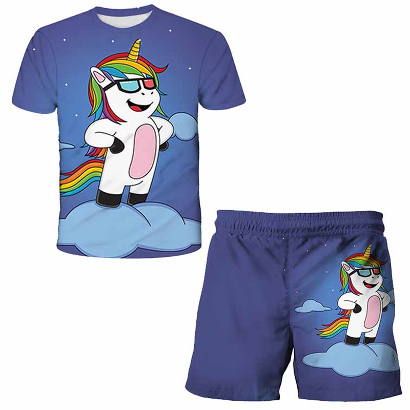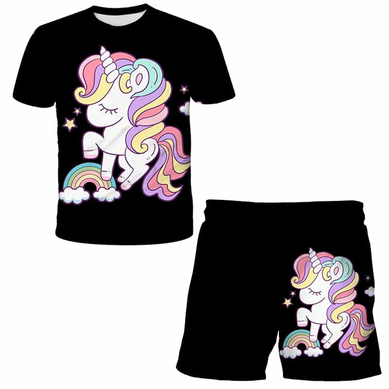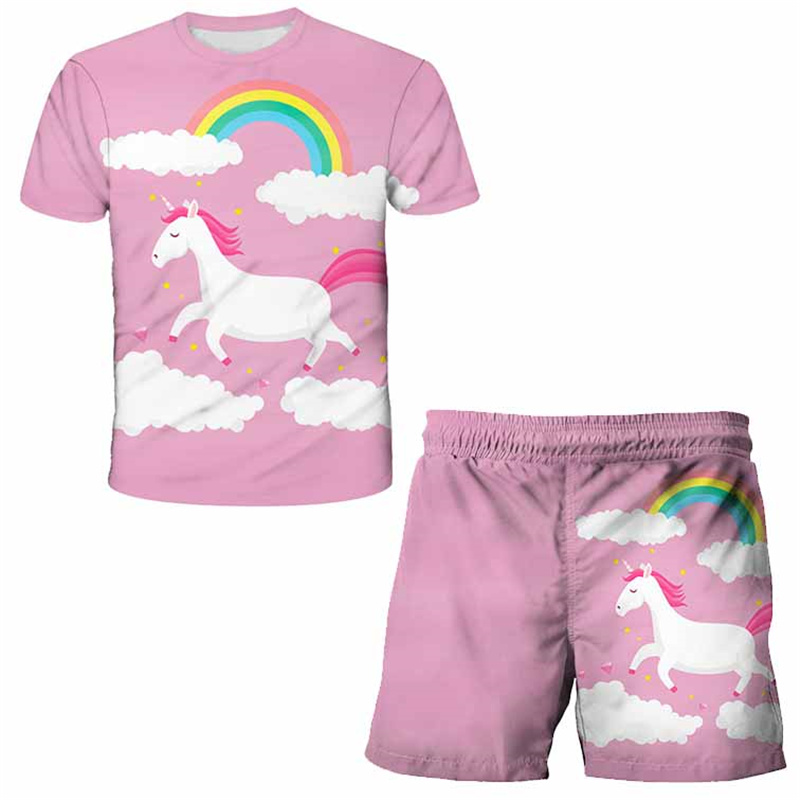 קולקציית הקיץ שלנו כבר כאן! חליפות קצרות לבנות הכוללות סט מכנס וחולצה עם הדפסים של חדי קרן!