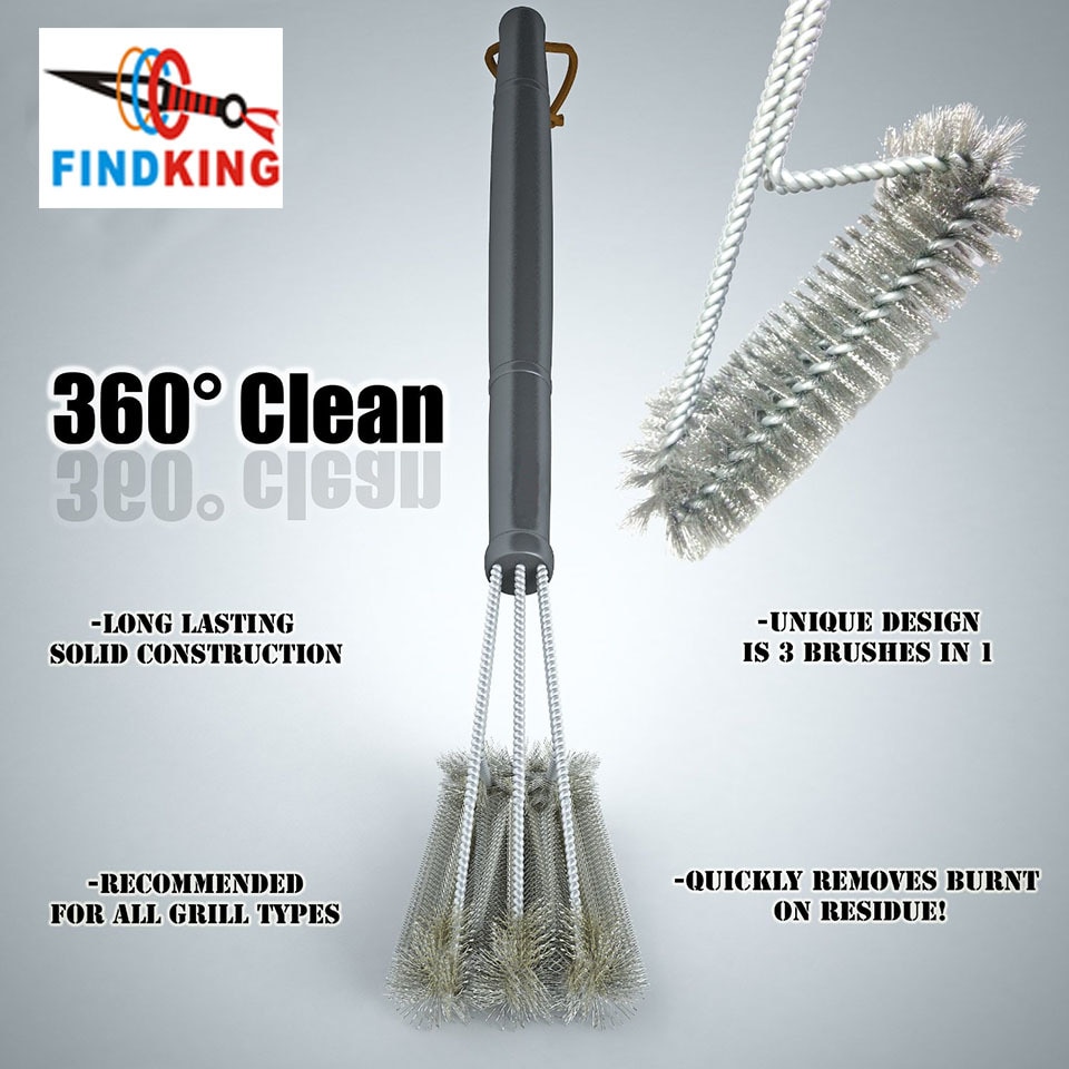 מברשת לניקוי גריל, מברשת חזקה במיוחד המגיעה עם 3 ראשי ניקוי עשויים סיבי נירוסטה איכותית המאפשרים ניקוי יעיל ונוח של רשתות הגריל.