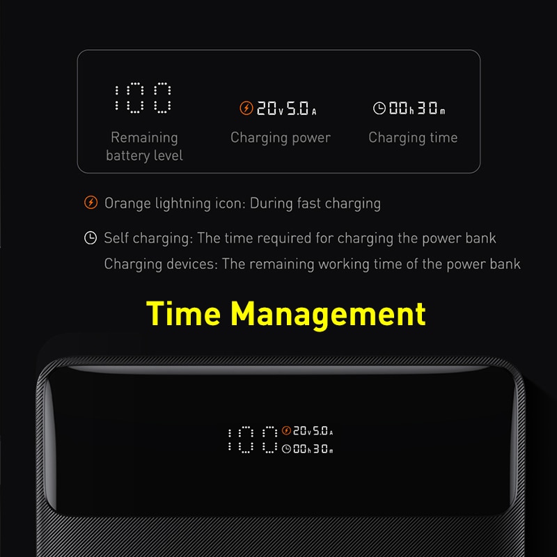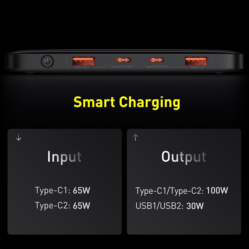 מטען נייד 100W מבית Baseus סופר עוצמתי, קיבולת סוללה 20,000mAh, תומך בטעינה מהירה דו כיוונית, מטעין מחשבים ניידים, טאבלטים, סמארטפונים ועוד.