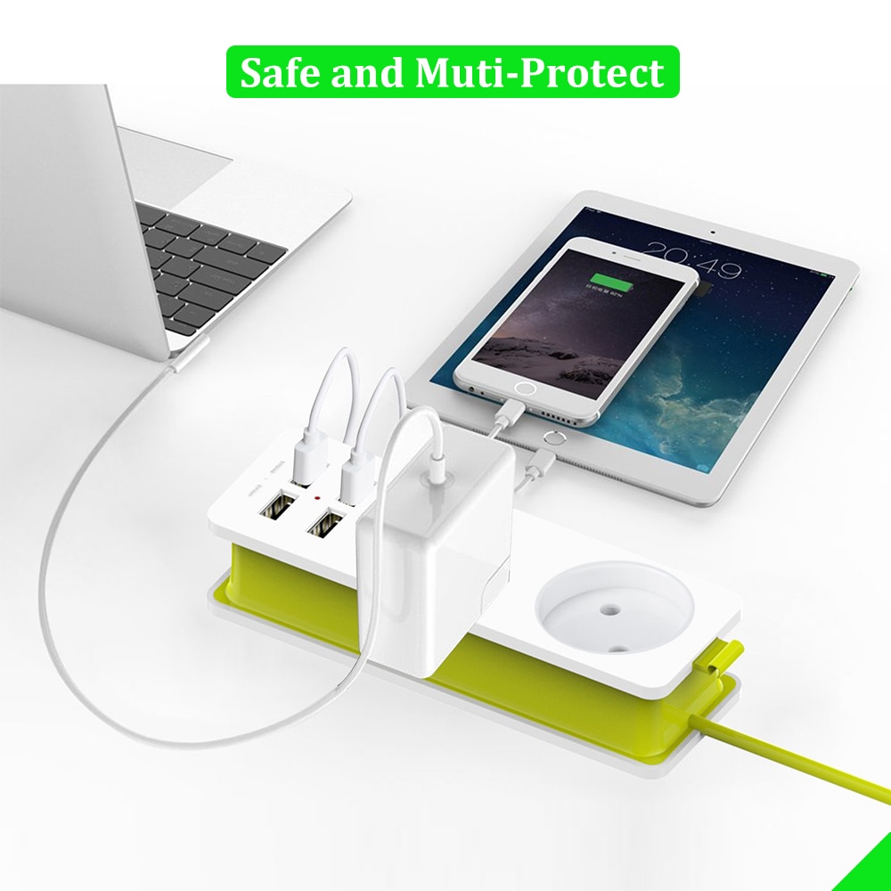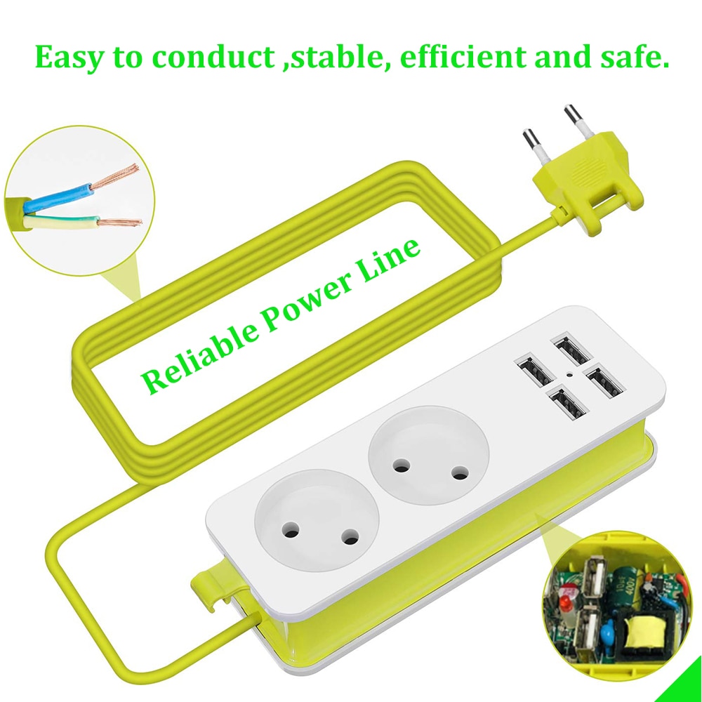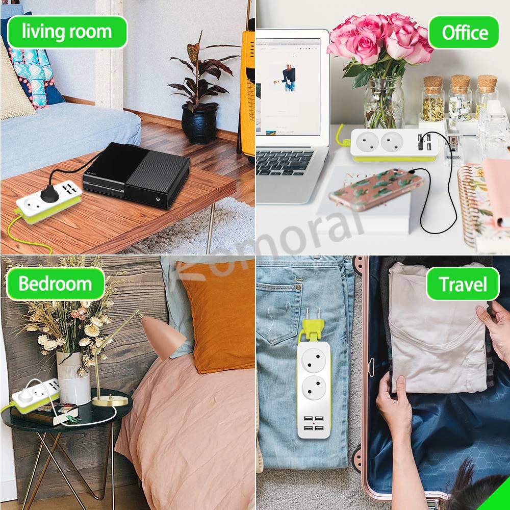 רב שקע נייד בעל 2 יציאות ו4 חיבורי USB עם כבל מתקפל באורך מטר וחצי, קומפקטי וקל לנשיאה.