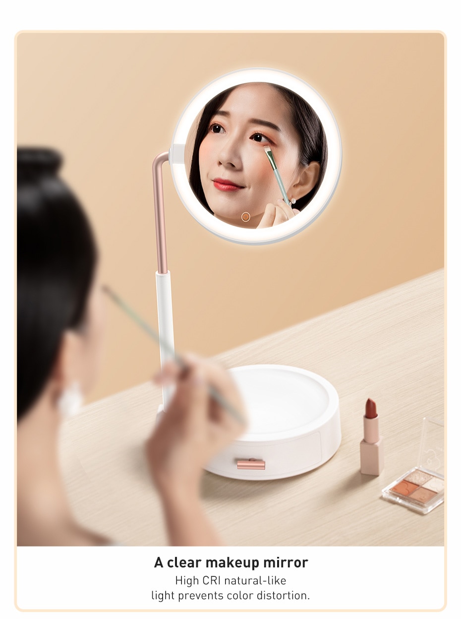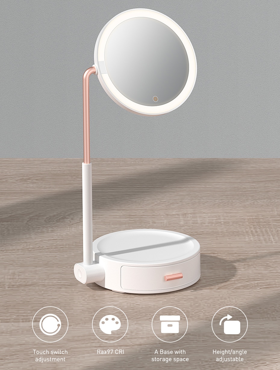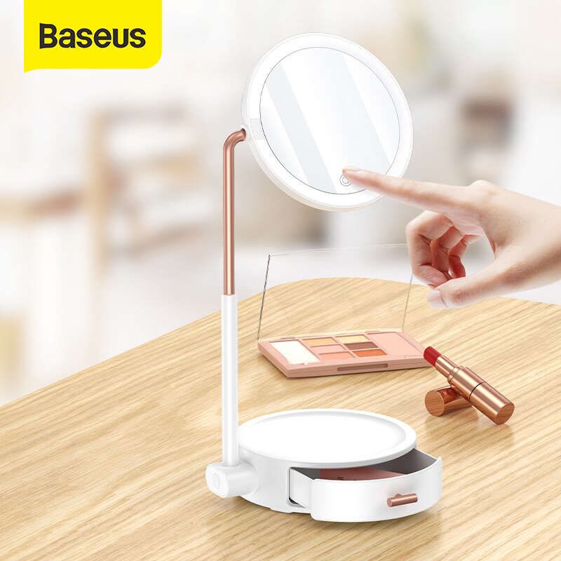מראת איפור ניידת מבית Baseus עם מסגרת תאורה ומגירת אחסון.