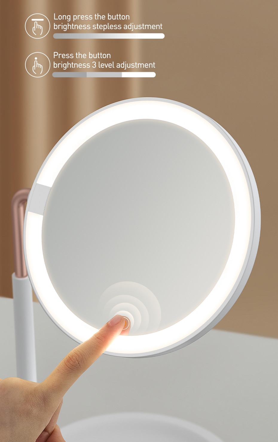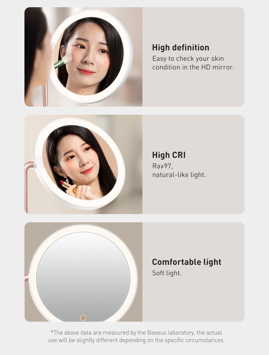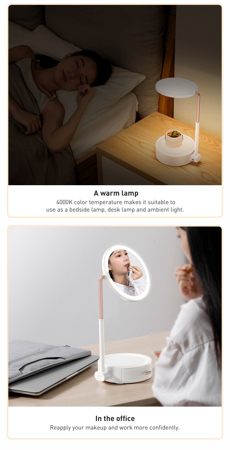 מראת איפור ניידת מבית Baseus עם מסגרת תאורה ומגירת אחסון.