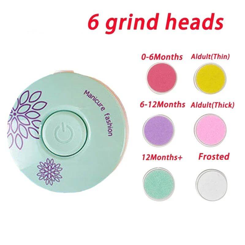 המשייף החשמלי שלנו לא יכול להכאיב לתינוק, ומגיע עם 6 ראשים מתחלפים המתאימים לכל גיל. בעיצוב ידידותי שנראה כמו צעצוע חביב, המשייף הופך את משימת גיזום הציפורניים לקלה ומהנה עבורכם ועבור תינוקכם.