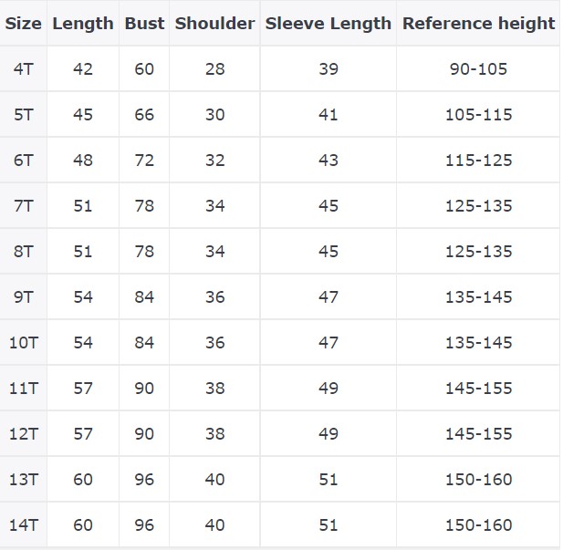 מידות לבחירה – 4T-14T.
