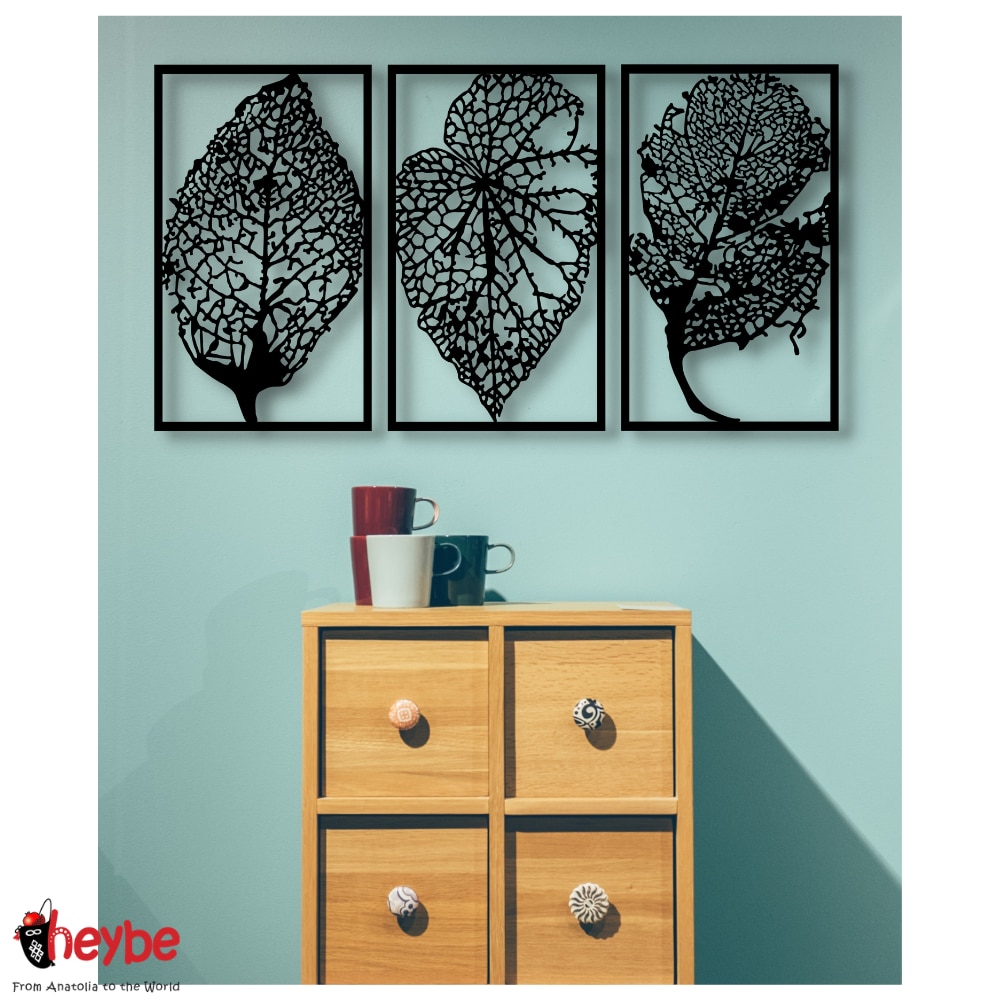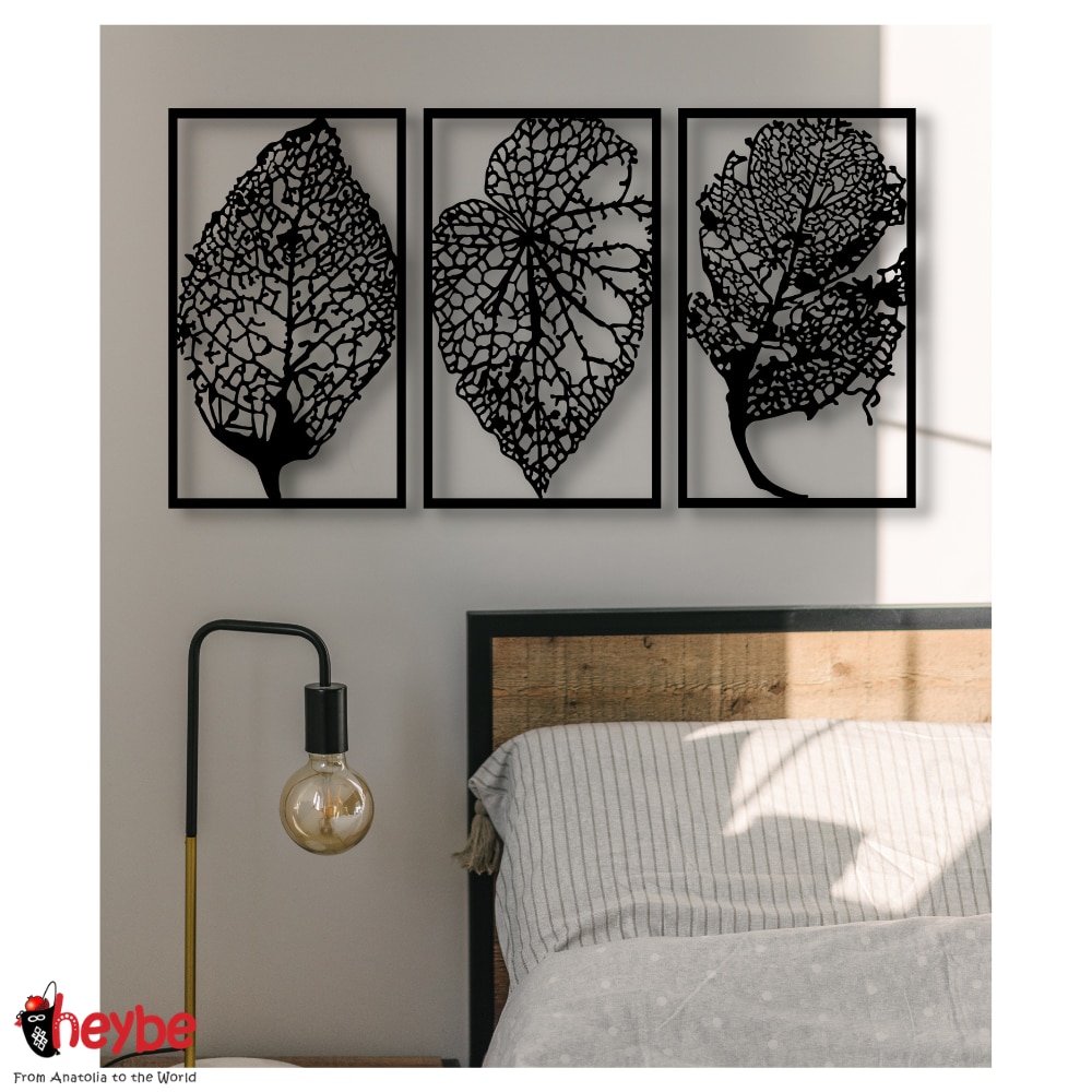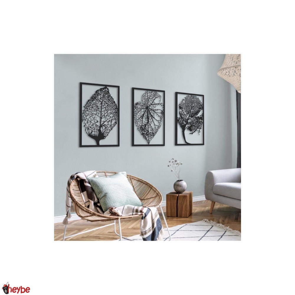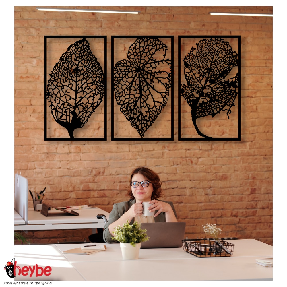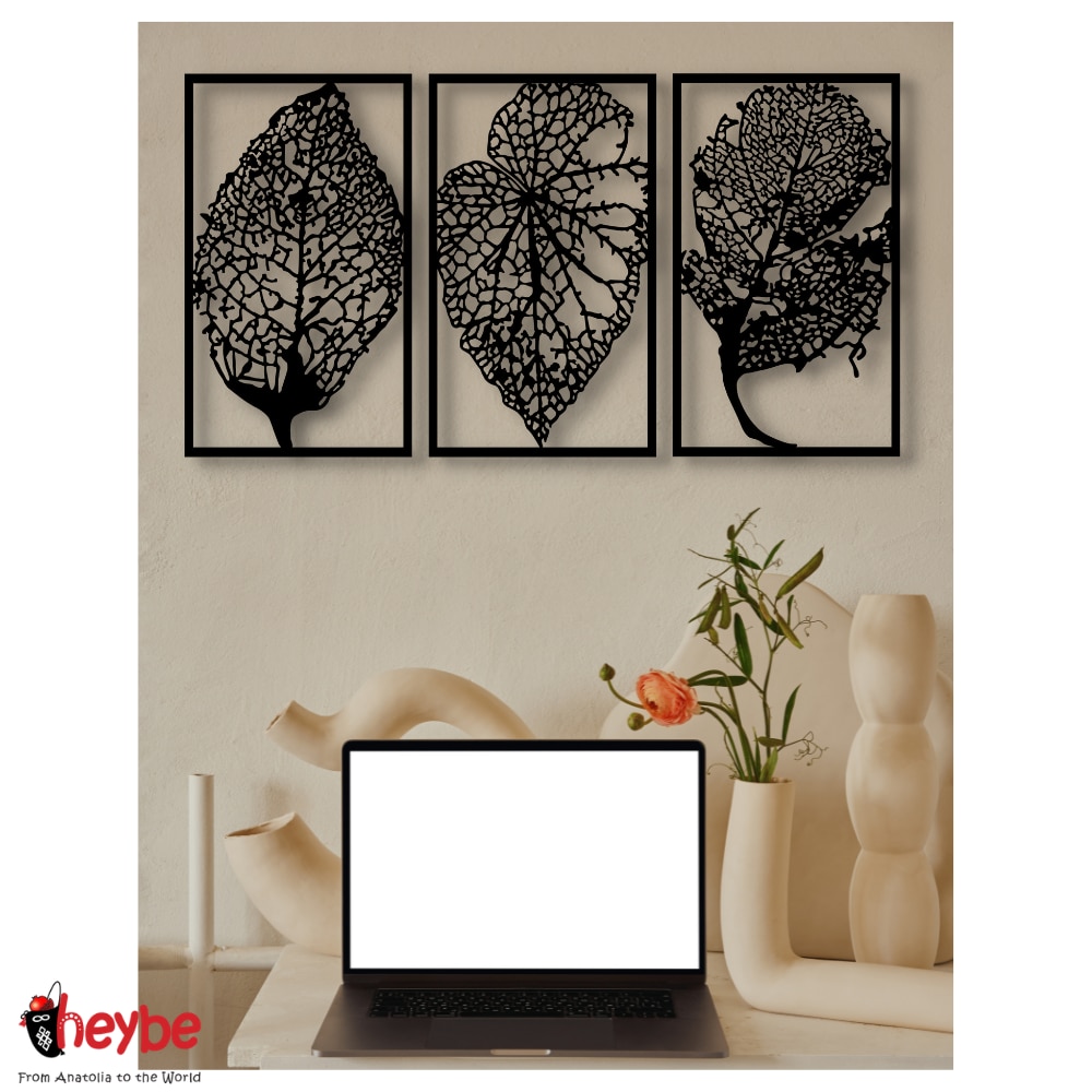 סט 3 תמונות בחיתוך לייזר עץ דגם “עלים”