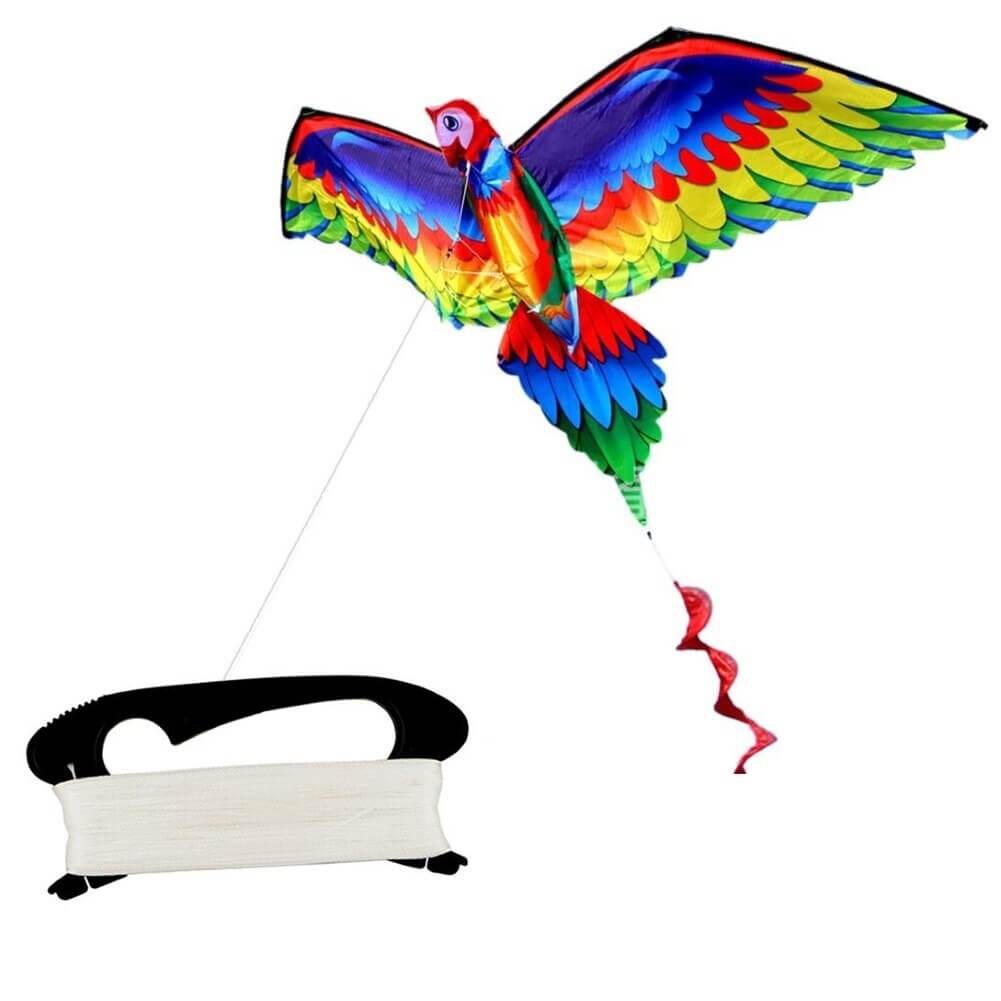 עפיפון בצורת תוכי צבעוני! העיפיפון מגיע עם סליל פלסטיק לעפיפון.