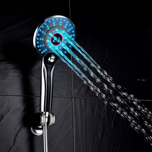 ראש מקלחת עם מד טמפרטורה מובנה ותאורת לד שמשתנה בהתאם לרמת חום המים!