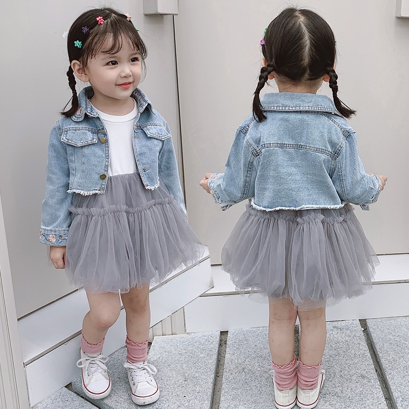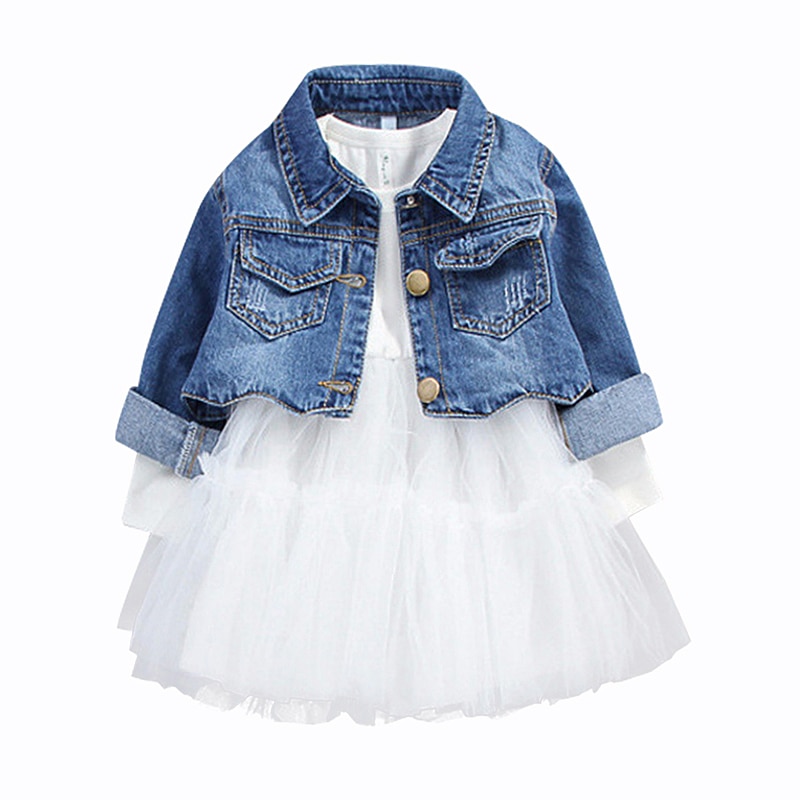 מבחר שמלות טול הורסת עם ג'קט ג'ינס. מידות: 9 חודשים עד 5.
