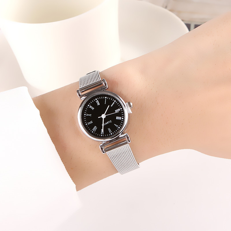 שעון לאישה עם רצועת רשת מעוצבת ודקה במיוחד למראה נשי ועדין.