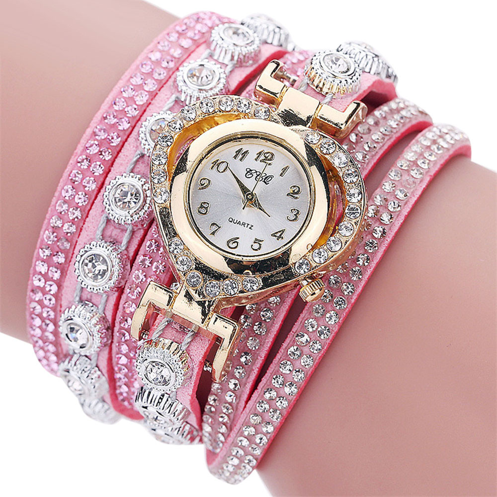 שעון צמיד שכולו תכשיט! שעון יד צמיד משובץ דמוי יהלומים וקריסטלים בצורת לב.