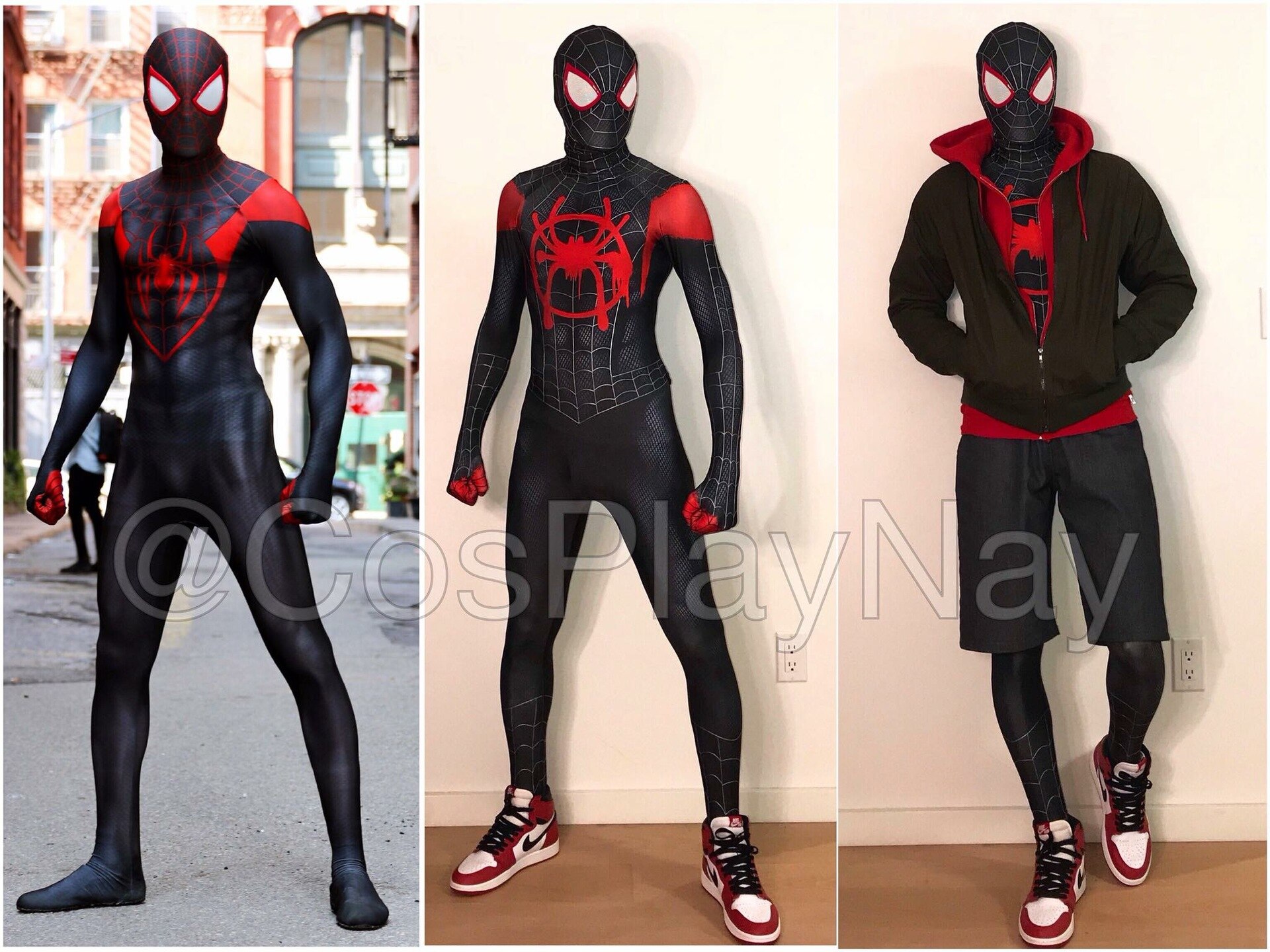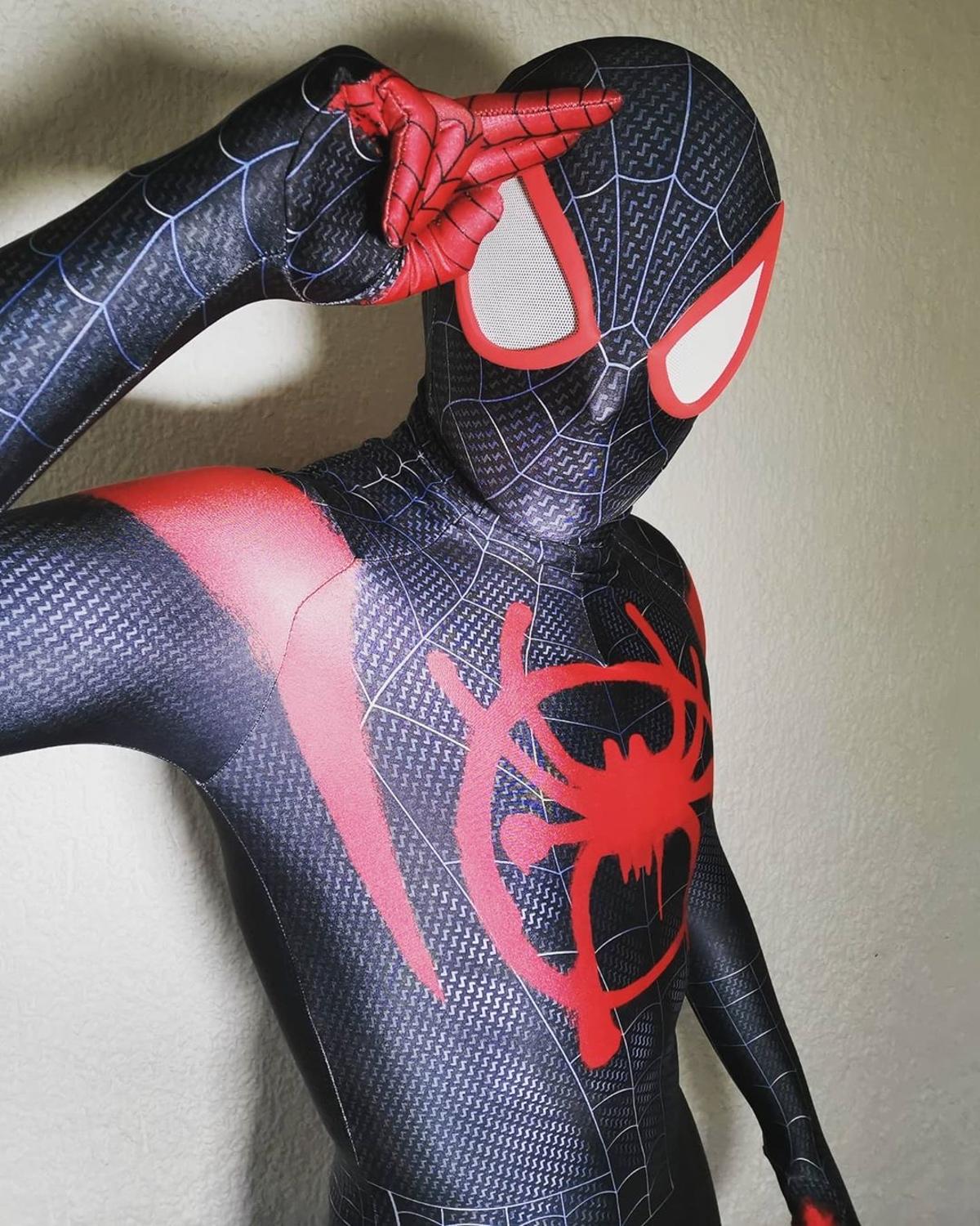 תחפושת ספיידרמן מיילס מוראלס / תחפושות לפורים החליפה מסוג בד ליקרה באיכות טובה, גמישה ואוורירית. מידות לילדים ומבוגרים.
